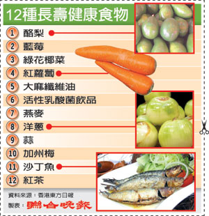 要年輕與長壽,除了做運動,飲食也很重要,營養師指出,低卡路里飲食的確有助延年益壽,其中水及12種「超級食物」(酪梨、藍莓、綠花椰菜、紅蘿蔔、大麻纖維油、活性乳酸菌飲品、燕麥、洋蔥、蒜、加州梅、沙丁魚、紅茶)更是抗衰老與抗疾病的聖品。